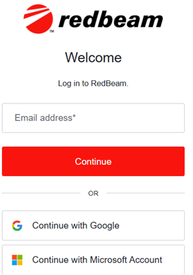 Enter your login credentials on the Login screen at app.redbeam.com or login with Google, Microsoft or other integrated authentication system. If forgotten, users can reset their passwords from this screen by entering your email address and clicking Continue.