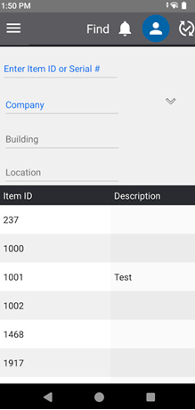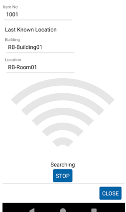 The Find function is helpful when a tag with a known Item Number or round-about location needs to be homed in on with RFID.