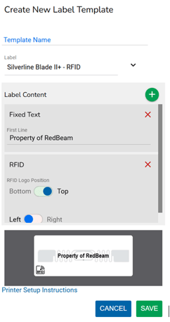 - Enter a Template Name that clearly represents the label (My Company Asset Label).