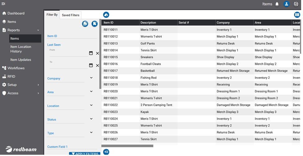 View every tag movement in the Item Location History Report. This report can be filtered by the same criteria as the Items Report with the addition of Serial Number and RFID Tag ID.