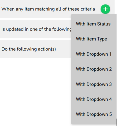 - Click the green plus button to select specific items that will trigger the workflow